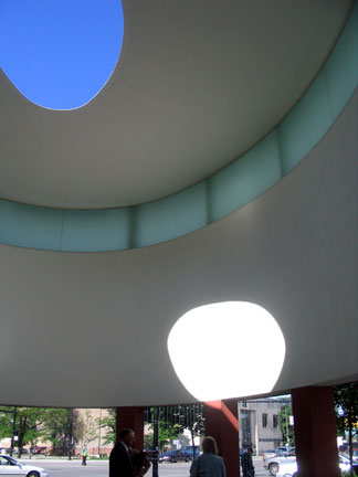 Last Friday saw the dedication of James Turrell's UIC Skyspace, a round, 43 feet in diameter observatory-type pavilion whose 26-foot-high ceiling is pierced by a central oculus designed tof create the experience of "celestial vaulting - the illusion, when viewing the sky without a horizon line, that the sky is aligned with the plane of the ceiling." Skyspace is the focal point for the Earl L. Neal Plaza, dedicated to the late lawyer, civic leader, and University of Illinois trustee who championed the construction of the school's west side campus in 1960's. The plaza is defined as providing a new gateway to the UIC South campus.
